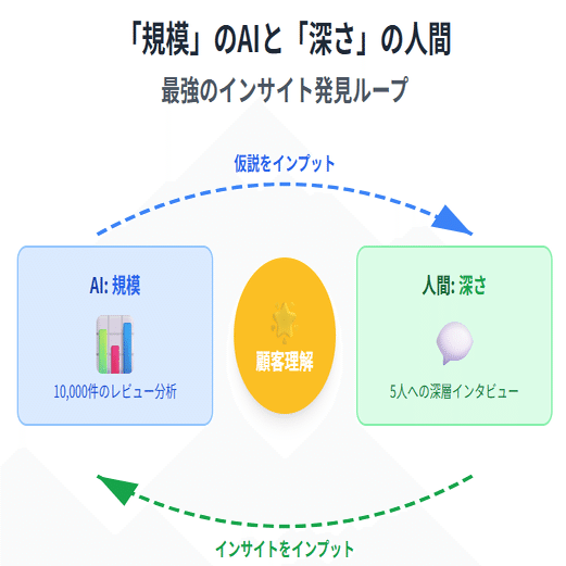 この「AI → 人間 → AI」という連携ループを回すことで、私たちは「規模」と「深さ」を両立させ、競合他社が決して到達できない、極めて強固な顧客理解を築くことができるのです。