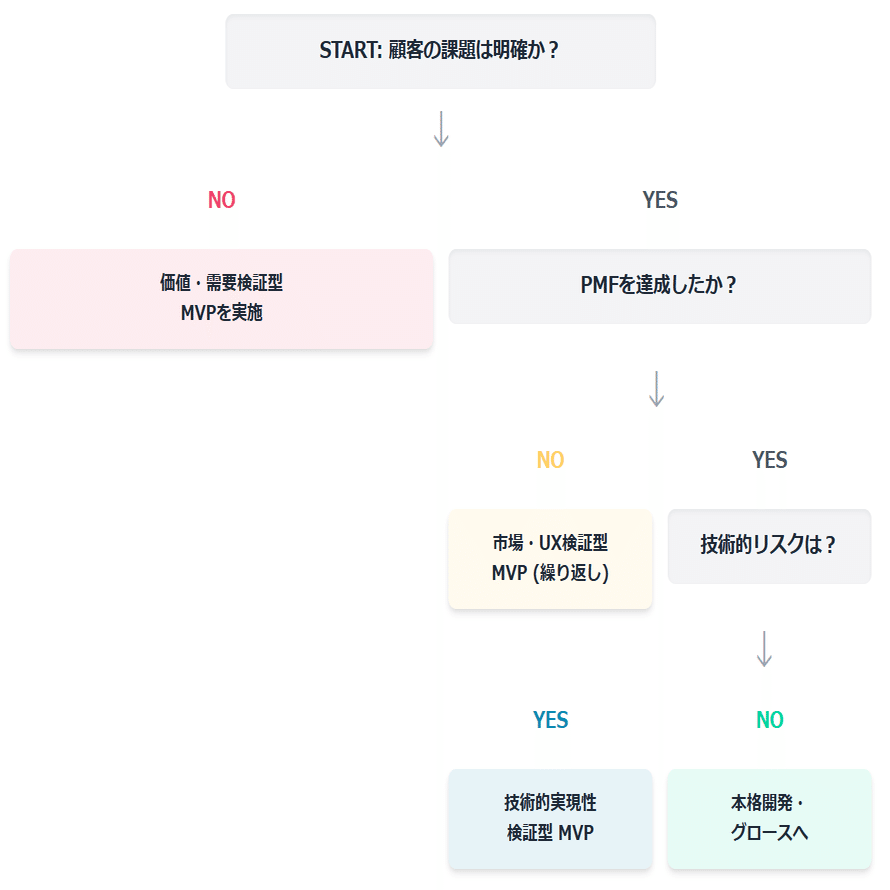 社内で、各開発フェーズ(PoC, プロトタイプ, MVP, 本開発)の定義と目的が共有されていない。